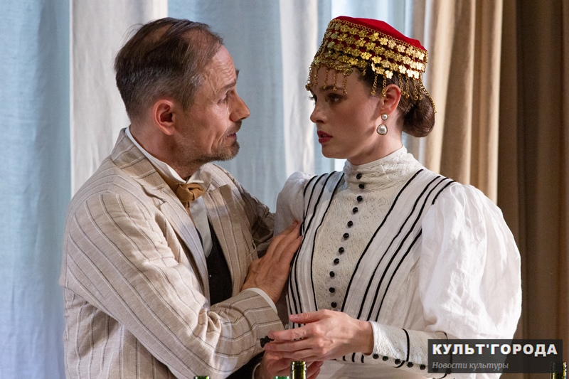 CULTGORODA_3259 09.06.2022 800 × 533 Театр Сатиры готовит премьеру спектакля «Дядя Жорж» Сергей Шнырев и Ангелина Стречина (2022) Фото из спектакля «Дядя Жорж» Театра Сатиры. Режиссер Сергей Газаров. Премьера 9 и 10 июня 2022 года. Фото: Антон Романов
